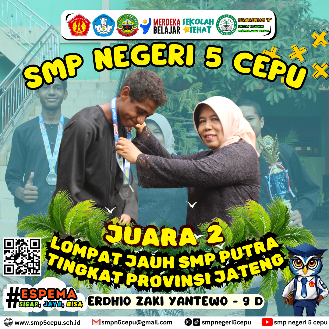 Selamat Kepada Ananda Erdhio Zaki Yantewo Kelas 9D yang telah memperoleh Juara 2 Lompat Jauh SMP Putra Tingkat Provinsi Jawa Tengah Student Athletics Championship Tahun 2024