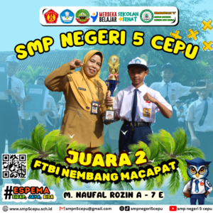 Selamat Kepada Ananda Muhammad Naufal Rozin Azhima Kelas 7E yang telah memperoleh Juara 2 Nembang Macapat FTBI Kabupaten Blora Tahun 2024